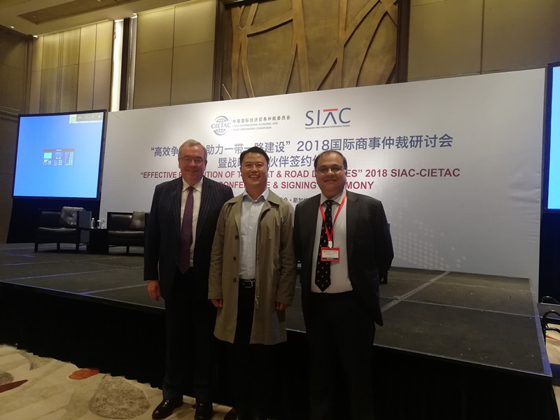 2018年10月12日,我所主任任广盛律师应邀出席由中国国际经济贸易仲裁委员会与新加坡国际仲裁中心联合举办的首届“高效争议解决助力一带一路建设”国际商事仲裁研讨会暨更新合作协议签署仪式。并与新加坡多家大型律师事务所的负责人、新仲相关负责人等中外法律界、仲裁界、工商界以及学界人士在会议中围绕国际仲裁的最新发展进行了密切交流。