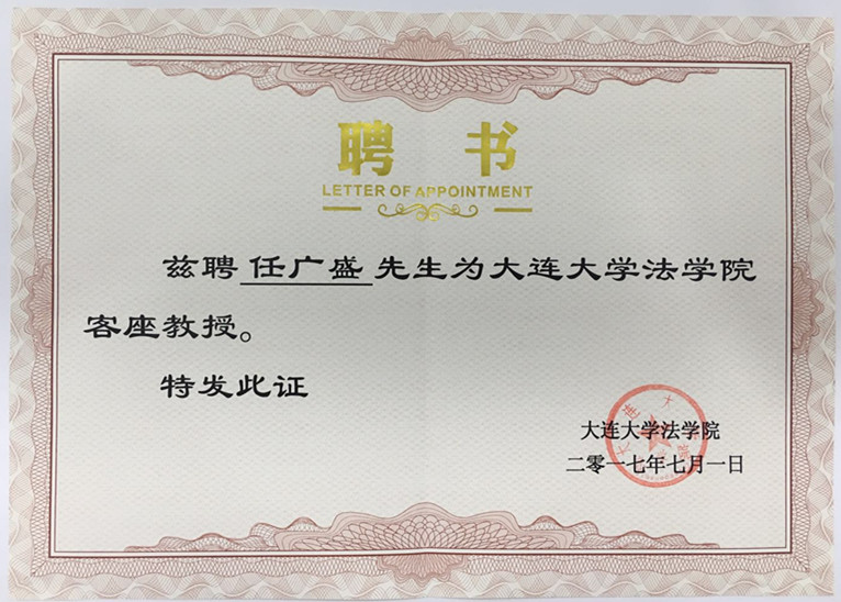 本所主任任广盛律师的受聘,充分显示了大连大学法学院对辽宁盛和律师事务所及任广盛律师的认可与信任。